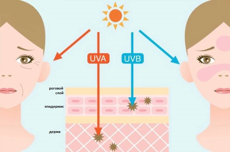 Отличие UVB и UVA излучения и его влияние на кожу.